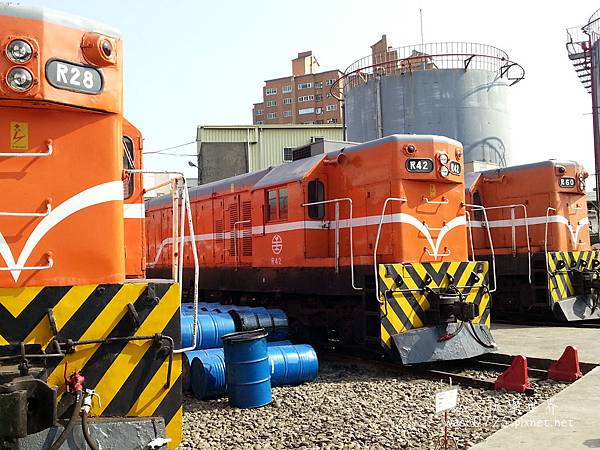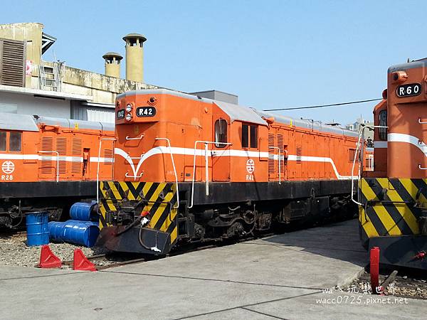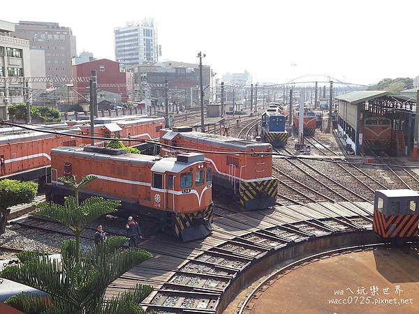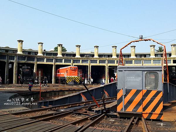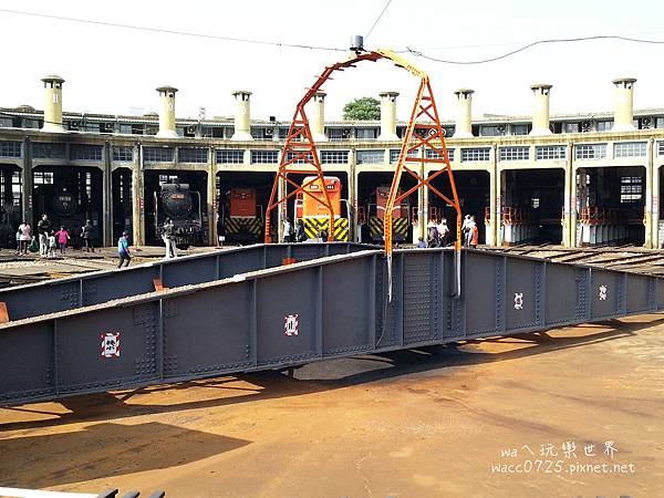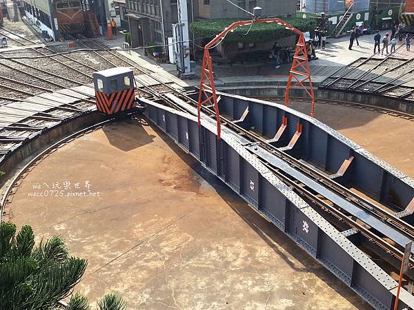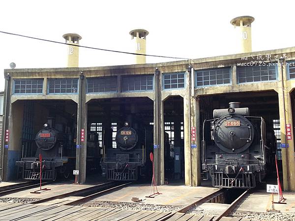 這三輛火車停靠的位置是後來增建的3股道 走進去即可看到扇形車庫正面與圓形轉盤