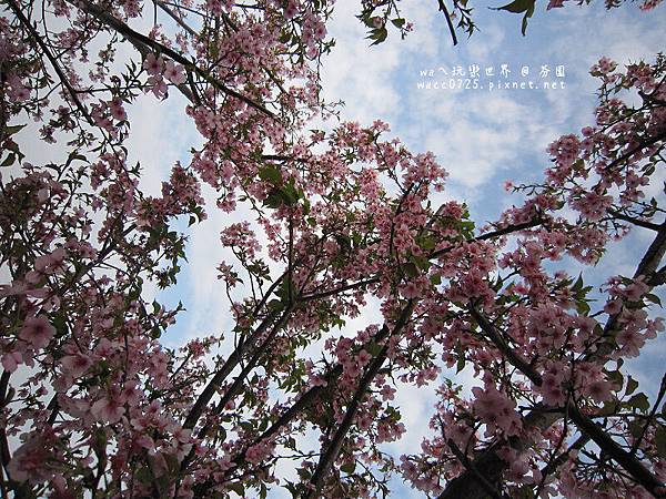 抬頭看 盡是滿載的櫻花 白雲藍天陪襯下 怎麼拍都是超美的一幅畫